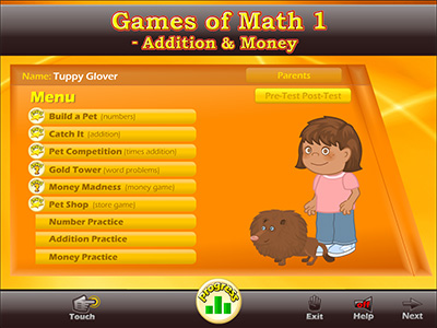 Educational math program for ages five and up. Featuring fun games and activities teaching addition and money.