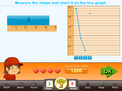 This program helps teach subtraction, measuring and geometry. It contains 6 games, and 3 practice sections.