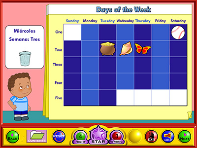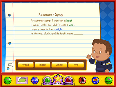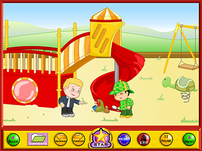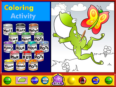 This program helps teach English skills, reading and writing. It contains thirteen games, fourteen activities and seven animated story lessons/songs.